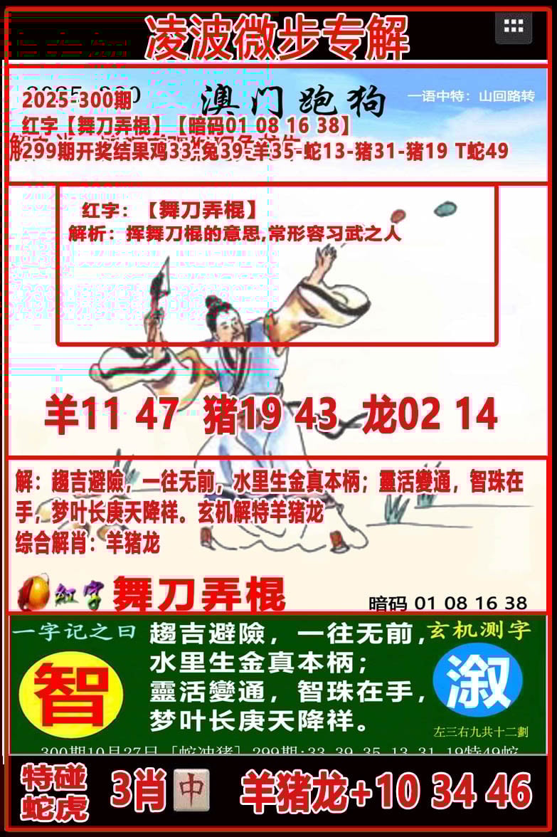 300期 ★百万秘籍 【澳彩甄选】 点击查看